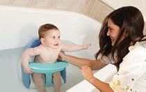 - Infant Bath Seat cradles the infant by supporting the legs and arms while bathing